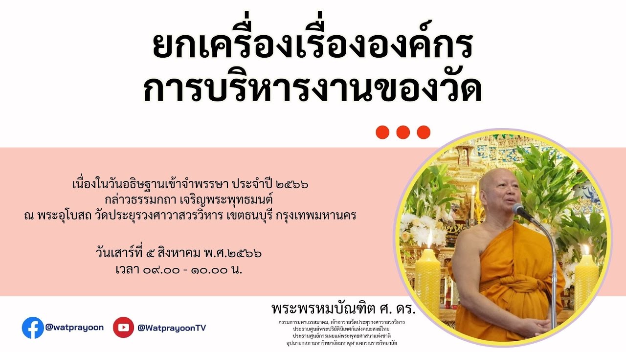 เรื่อง ‘ยกเครื่องเรื่ององค์กรการบริหารงานของวัด’
