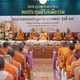 โครงการอบรมหลักสูตรวิชาการเทศนา รุ่นที่ ๒๙ จัดขึ้นเพื่อพัฒนาศักยภาพด้านการเทศนาและเผยแผ่พระพุทธศาสนาให้แก่ พระภิกษุและสามเณร ที่มีความตั้งใจในการฝึกฝนทักษะการเทศน์อย่างถูกต้องตามหลักธรรมวินัย โดยมุ่งเน้นทั้งด้านความรู้ภาคทฤษฎีและฝึกปฏิบัติจริง การอบรมในครั้งนี้มีรูปแบบการเรียนรู้แบบ เข้มข้น ตลอดระยะเวลา ๓ เดือน ตั้งแต่วันที่ ๔ สิงหาคม – ๒๕ ตุลาคม ๒๕๖๗ โดยมีการฝึกปฏิบัติการเทศน์ทุก วันพระ ทั้งยังมีการบรรยายพิเศษโดย พระวิทยากรผู้ทรงคุณวุฒิ ในแต่ละสัปดาห์ วัตถุประสงค์หลักของโครงการคือ:- เสริมสร้างทักษะและเทคนิคในการเทศนา ให้มีความถูกต้อง ชัดเจน และเข้าใจง่ายสำหรับผู้ฟัง